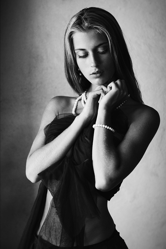 Portrait photo, which is called "Black and pearls" was made by the author: sofig